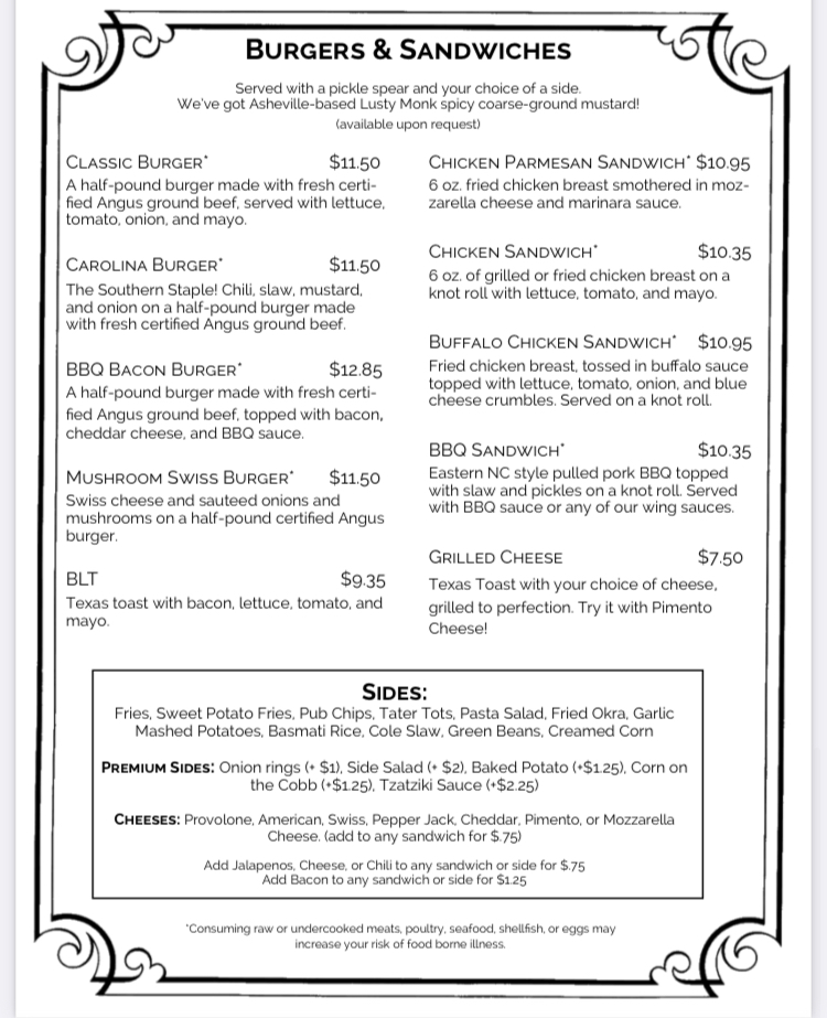 Welcome to Side Street Pour House and Grill, a hidden gem located at 128 N Main St, Lenoir, NC. This laid-back establishment is the perfect spot for food enthusiasts seeking a memorable dining experience. The menu features an array of delectable options, from the classic BLT to the mouthwatering Chicken Parm Sandwich and a delightful grilled pimento cheese that has garnered rave reviews.